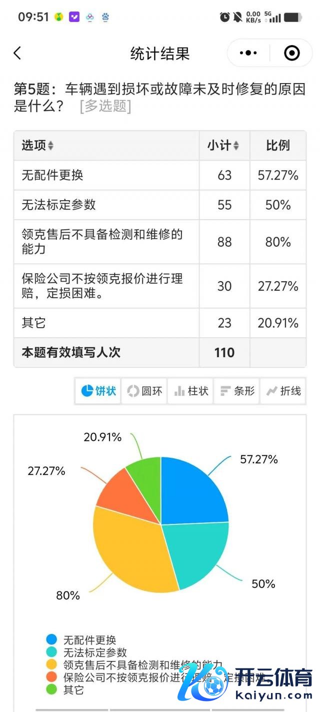 对于车辆遭受损坏或故障未能实时开辟的原因,投票效果知道,领克不具检测和维修的智力、无法更换配件,无法标定参数等原因排在前三位。